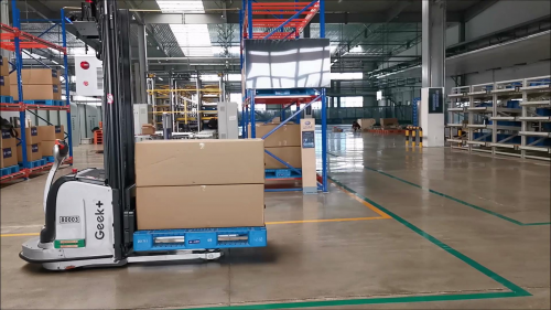 Geek+無人叉車在長(zhǎng)春一汽智能工廠內(nèi)運(yùn)行作業(yè)